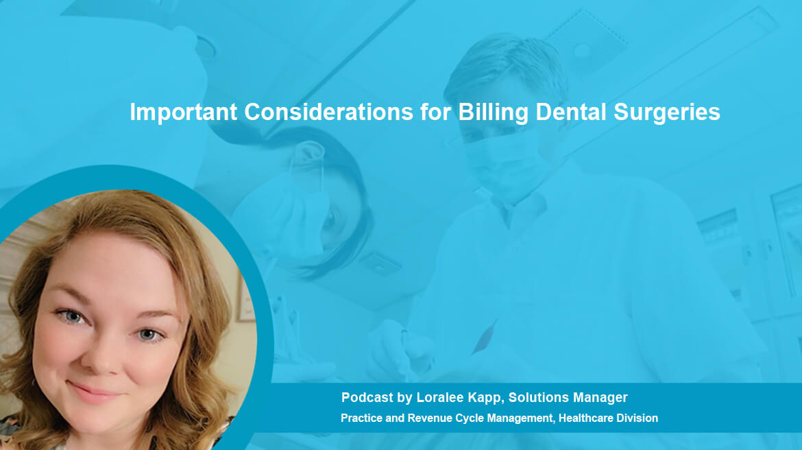 In today’s podcast, Loralee Kapp, one of our Solutions Managers discusses some important considerations for billing dental surgeries.